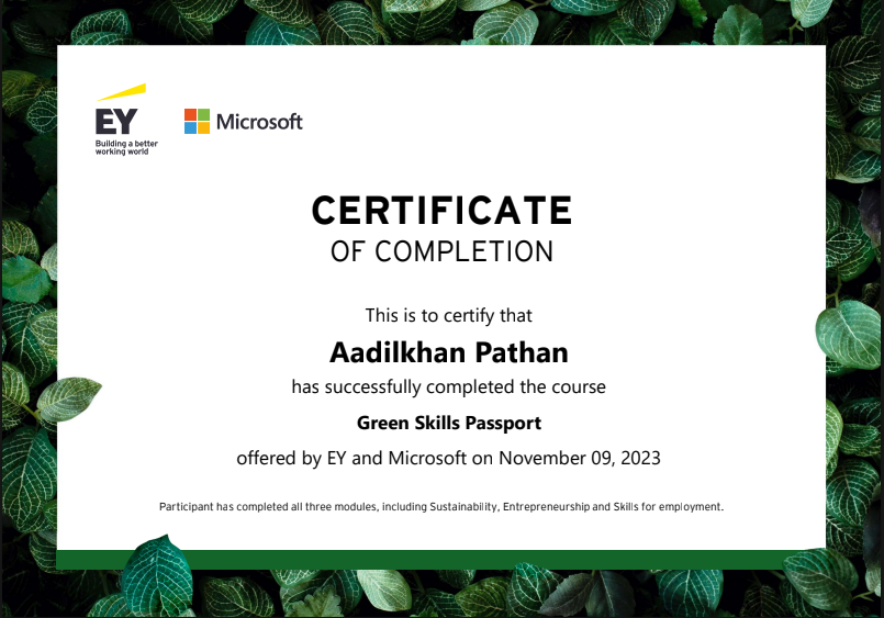Certified by EY and Microsoft in sustainability, entrepreneurship, and future-ready employability skills.